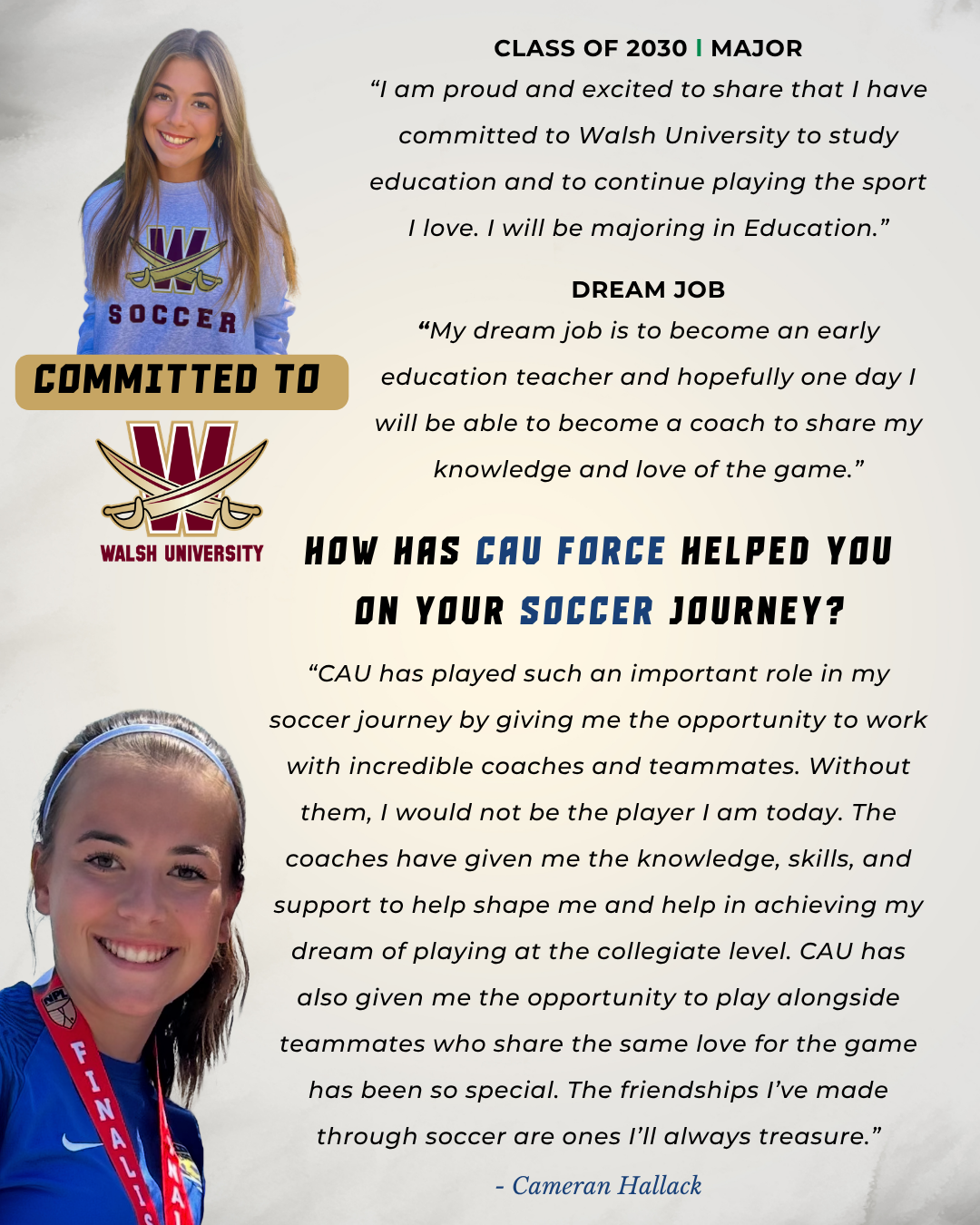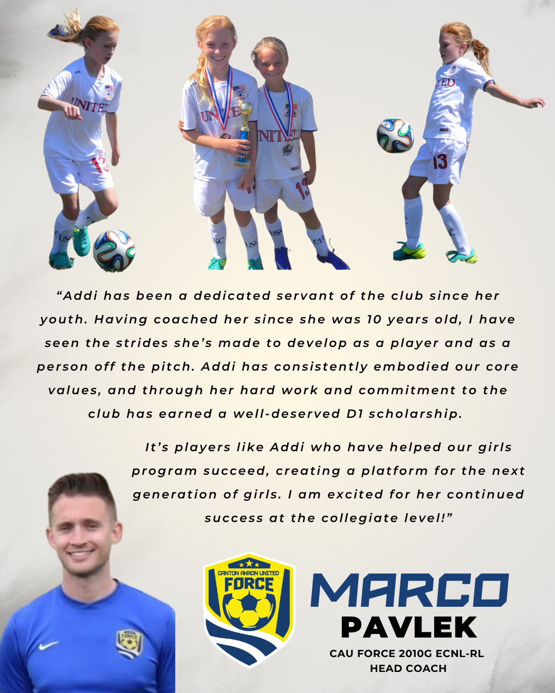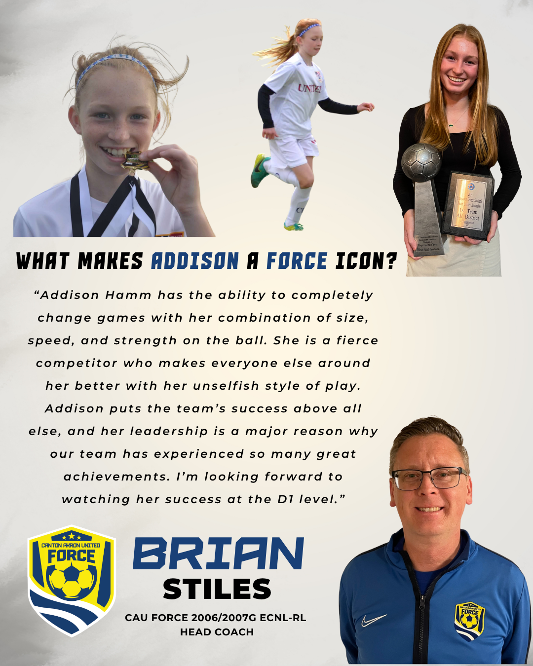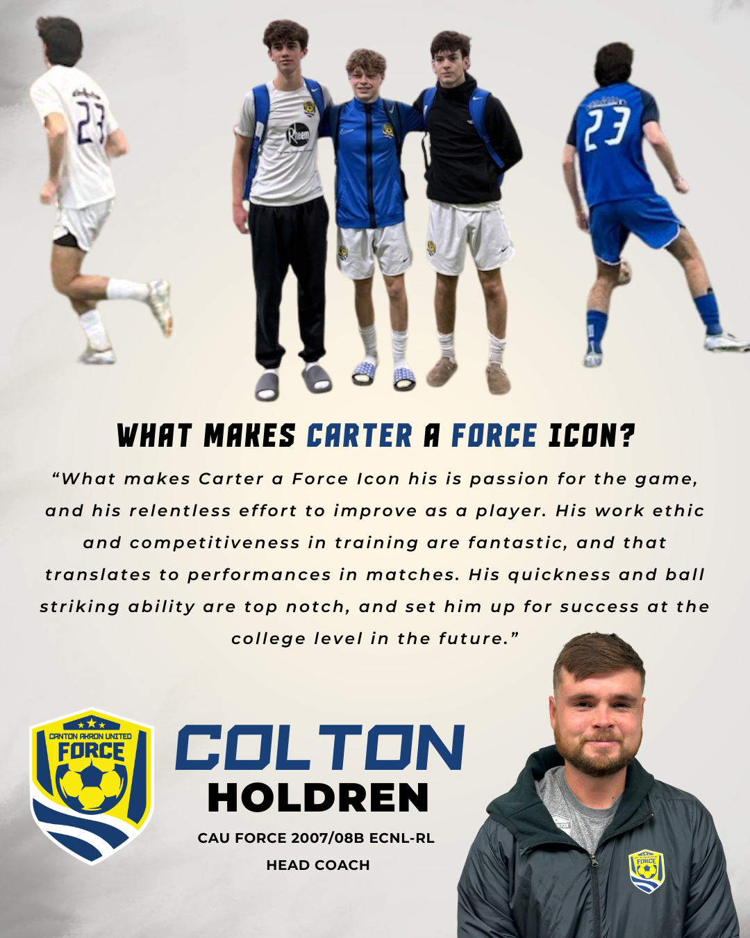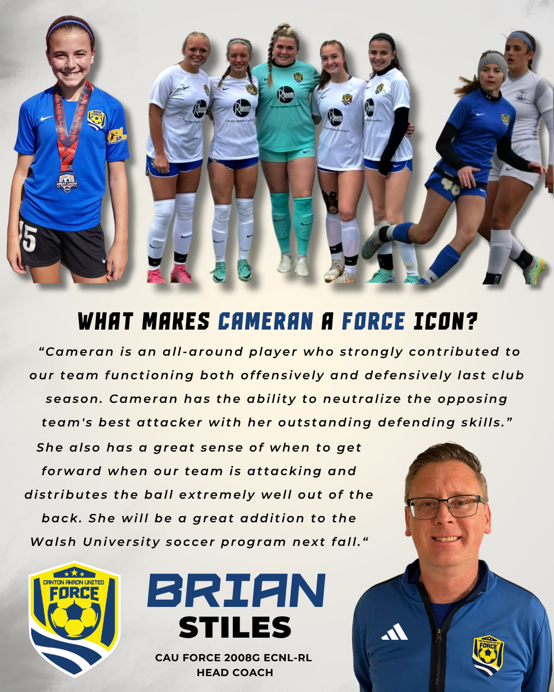 Every player has a different story of how they started soccer, how they developed and where they are going next to pursue their love of the game. Our Canton Akron United Force Icon series highlights CAU Force players who have developed into star performers, that we hope the next generation of Force players can aspire to follow in their footsteps. Scroll through the page or click on the images below to jump to a player to learn what makes each of them a CAU Force Icon Player!
